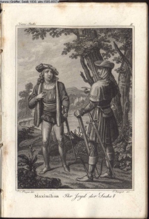 Bildliche Darstellungen zu dramatischen Werken vaterländischer Dichter. Dritte Lieferung (Sammlung INr 85571, Obj 5) Illustration zu »Hans Sachs« von Deinhardstein