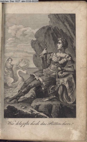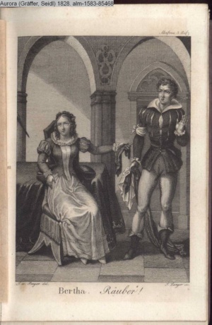Illustration zu »Der blöde Ritter. Komisches Singspiel in einem Aufzuge. Nach Scribe« von M. Communis d.i. J. G. Seidl INr 69435, Obj 25