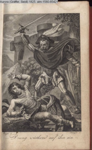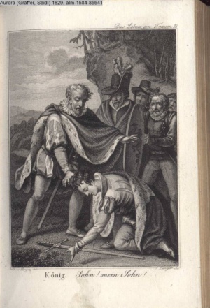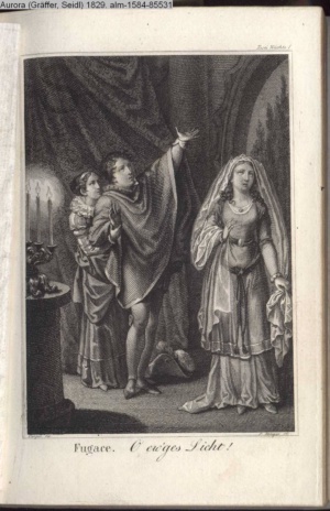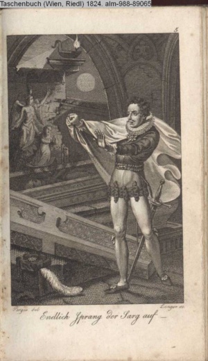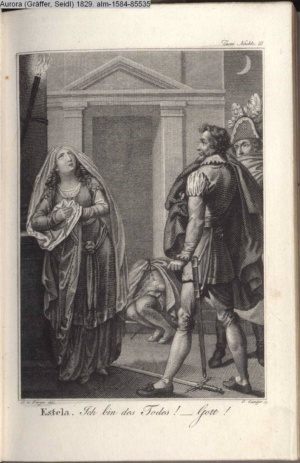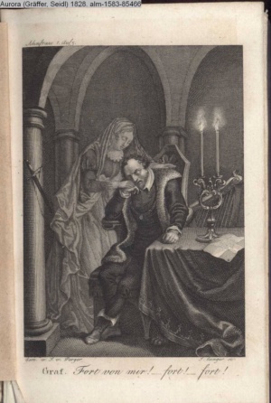 Bildliche Darstellungen zu dramatischen Werken vaterländischer Dichter. Zweite Lieferung (Sammlung INr 85530, Obj 7) Illustration zu »Zwei Nächte zu Valladolid« von J. C. v. Zedlitz