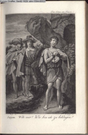 Bildliche Darstellungen zu dramatischen Werken vaterländischer Dichter. Zweite Lieferung (Sammlung INr 85530, Obj 6) Illustration zu »Das Leben ein Traum« von C. A. West d.i. J. Schreyvogel