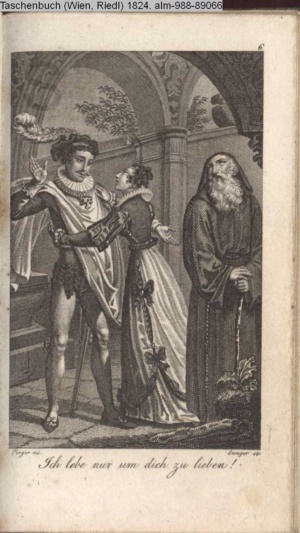 Bildliche Darstellungen zu dramatischen Werken vaterländischer Dichter. Zweite Lieferung (Sammlung INr 85530, Obj 6) Illustration zu »Zwei Nächte zu Valladolid« von J. C. v. Zedlitz