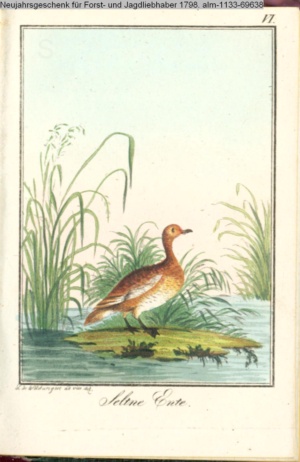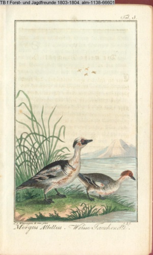 kolorierte Illustration zu »Die Tauchergans« von L. C. E. H. F. von Wildungen INr 66504, Obj 19