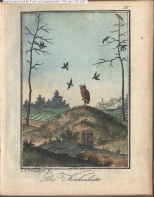 Illustration zu » Vom Schuhu und wie eine Krähenhütte anzulegen sey« von v. Wildungen INr 120522, Obj 17