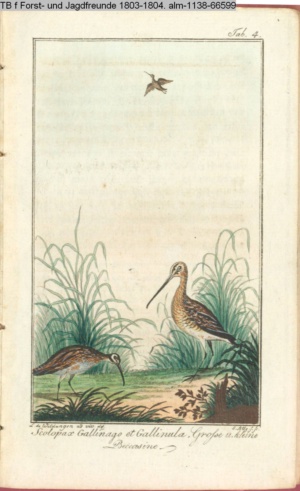 kolorierte Illustration zu »Die Waldschnepfe« von L. C. E. H. F. von Wildungen INr 66500, Obj 17