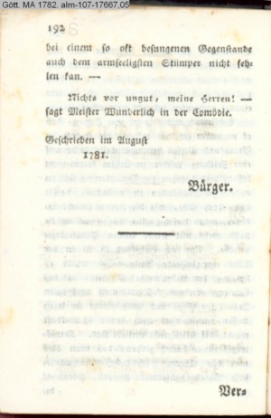 Ein Brief von Bürger an die erste Gattin / des berühmten ehemaligen Arztes Baldin- / ger. (Mitgetheilt von Justi).