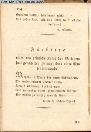 Rommel's Antwort an die / Sanfte. / Nach vorgeschriebenen Endreimen