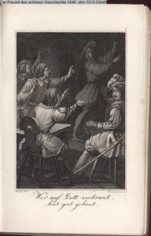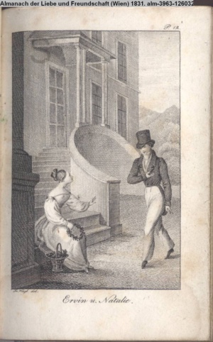 Die Graphik aus der Titelauflage: Taschenbuch für das Jahr 1842 Wien, bei Franz Riedl's sel. Wittwe & Sohn, k.k. Hofbuchbinder, Schottenhof No. 196