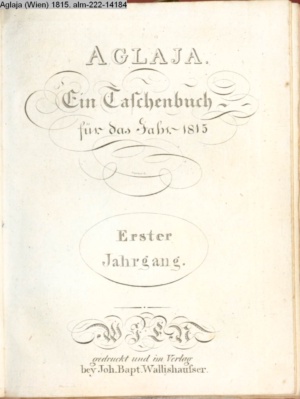 AGLAJA. / Ein Taschenbuch / für das Jahr 1815 / Erster / Jahrgang. / WIEN / gedruckt und im Verlag / bey Joh. Bapt. Wallishausser