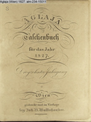 AGLAJA / Taschenbuch / für das Jahr / 1827. / Dreyzehnter Jahrgang. / Wien / gedruckt und im Verlage / bey Joh. B. Wallishauser