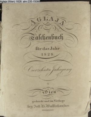 AGLAJA / Taschenbuch / für das Jahr / 1828. / Vierzehnter Jahrgang. / Wien / gedruckt und im Verlage / bey Joh. B. Wallishauser