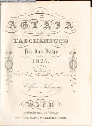 AGLAJA. / TASCHENBUCH / für das Jahr 1825 / Elfter Jahrgang. / WIEN, / gedruckt und im Verlage / BEI JOH. BAPT. WALLISHAUSSER