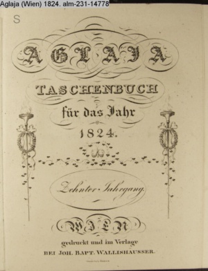 AGLAJA. / Ein Taschenbuch / FÜR DAS JAHR / 1824 / Zehnter Jahrgang. / WIEN, / gedruckt und im Verlage / BEI JOH. BAPT. WALLISHAUSSER