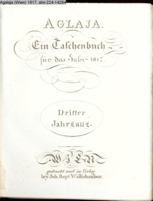 AGLAJA. / Ein Taschenbuch / für das Jahr 1817. / Dritter Jahrgang. / WIEN / gedruckt und Im Verlag / bey Joh. Bapt. Wallishauser
