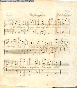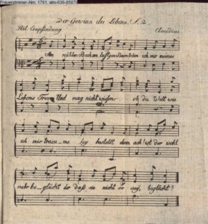 Sey mir gegrüßt feyerliche Stille, / Und der Melancholie Gefühl!…