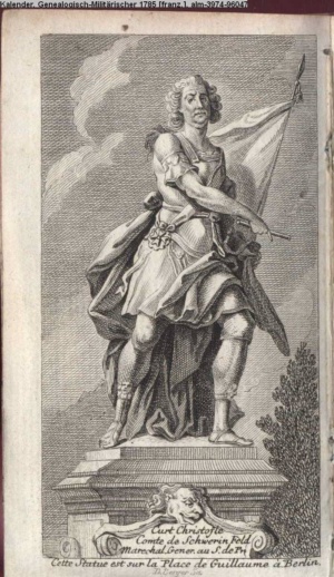 # Bezeichnung am ersten Blatt der Suite. Graphik im Kalendarium paginiert 7. Illustration zu »Manfred, Karl von Anjou und Konradin von Hohenstaufen«