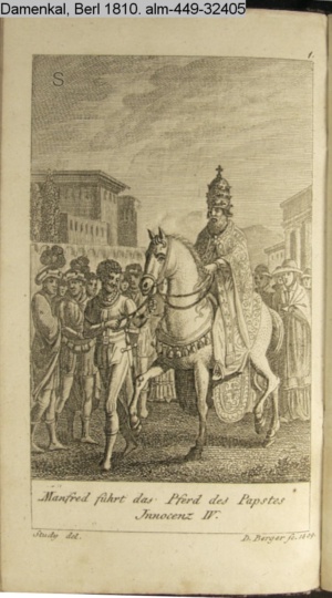 Manfred führt das Pferd des Papstes / Innocenz IV.