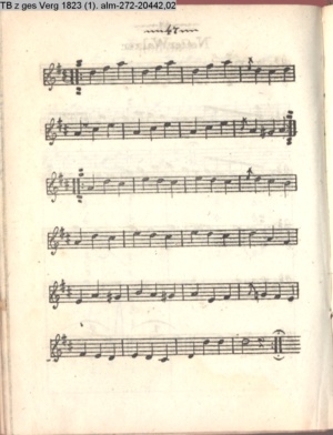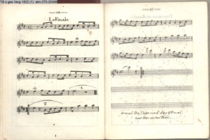 Tänze mit Musik Contredanses, Quadrille, Cotillon und Ecossaise, welche bei Hofe getanzt werden nebst Musik zu einem neuen Walzer herausgegeben von Herrn Lauchery Königl. Balletmeister und Solo-Tänzer in Berlin (Sammlung INr 20421, Obj 88) (Photos 20435,01-20435,05)