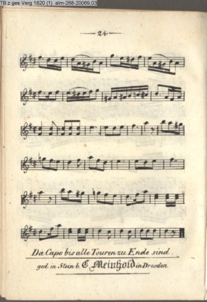 Tanztouren zu Beckers Taschenbuch 1820 von Lauchery, Königl. Preuß. Ballet-Meister und Solotänzer in Berlin (Sammlung INr 20053, Obj 135) (Photo 20054 u. 20055)
