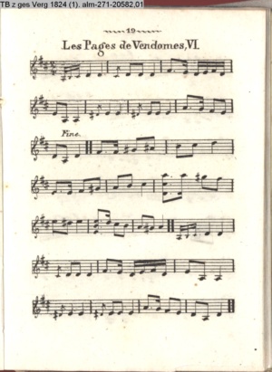 Tänze Contredanses Francaises und Ecossaise, welche bei Hofe getanzt werden herausgegeben von Herrn Lauchery Königl. Solo-Tänzer in Berlin (Sammlung INr 20294, Obj 66)