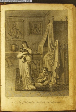 Sie legte schweigend ihre Hand auf Antoni- / ens Lockenhaupt. / zu der Erzählung: die Hochzeitfeier. S. 25