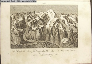 Ansicht der Gebirgskette des Montblanc / von Chamouny aus