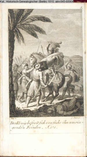 Der König befreit sich von sechs ihn umrin- / genden Feinden. S. 121