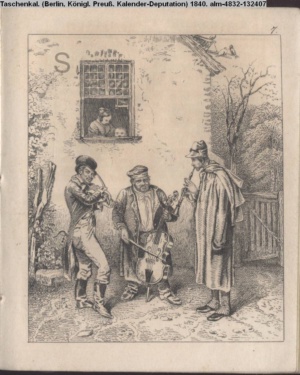 Illustration zu »Die wndernden Musikanten« von E. Ferrand d. i. Eduard Schulz INr 131417, Obj 19