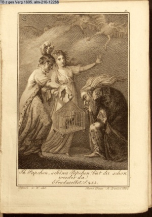 Illustration zu »Der Papagei« von W. G. Becker in: Taschenbuch zum geselligen Vergnügen 1804 INr 12151