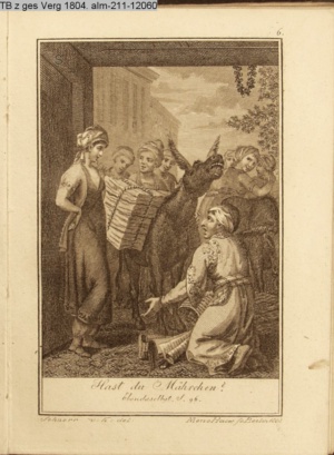 Illustration zu »Der Kalihf und der Schneider« von K. F. Kretschmann in: Taschenbuch zum geselligen Vergnügen 1806 INr 12523